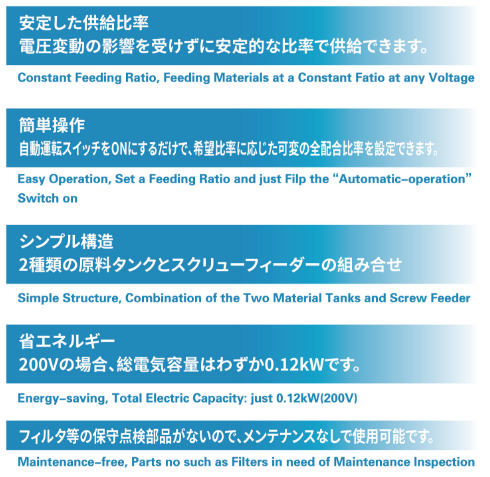 廉価型容量計(jì)量裝置 カワタのミックタンクは2種類の材料(主材+粉碎材)を任意の混合比率で供給可能な簡(jiǎn)易計(jì)量機(jī)です。